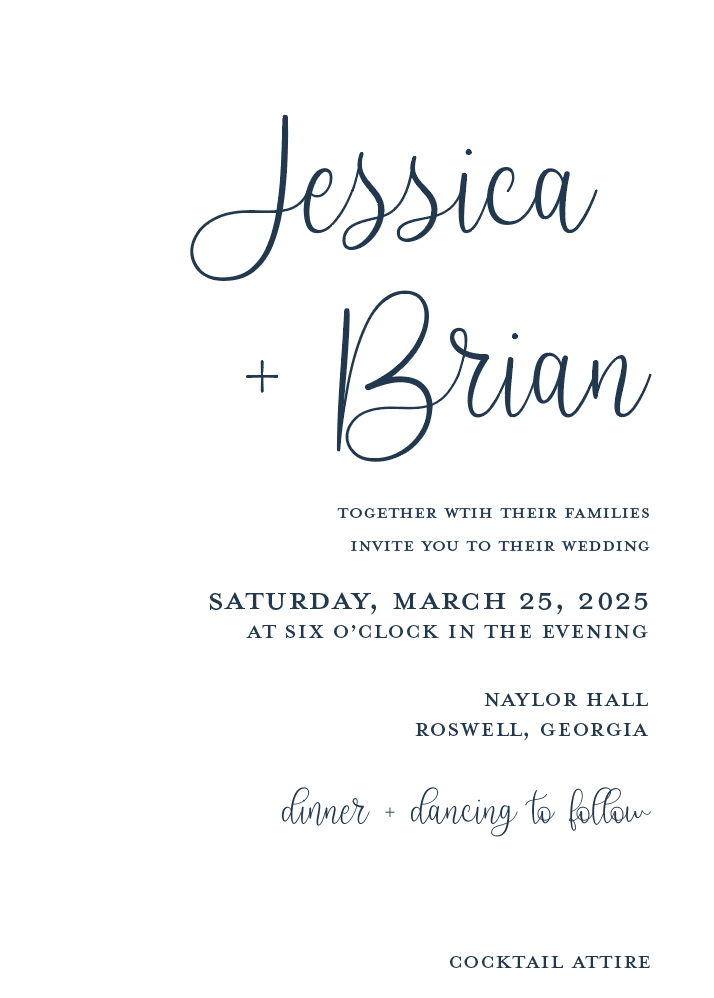 Not all weddings are formal affairs and this invitation suite is perfect for a little less formal! The playful fonts and off center information are a great pair to less traditional wedding ceremonies and venues.