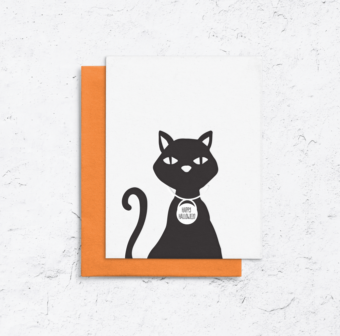 Letterpress Halloween greeting cards with coordinating envelopes. Who can resist a little black cat luck during the spookiest season of the year??