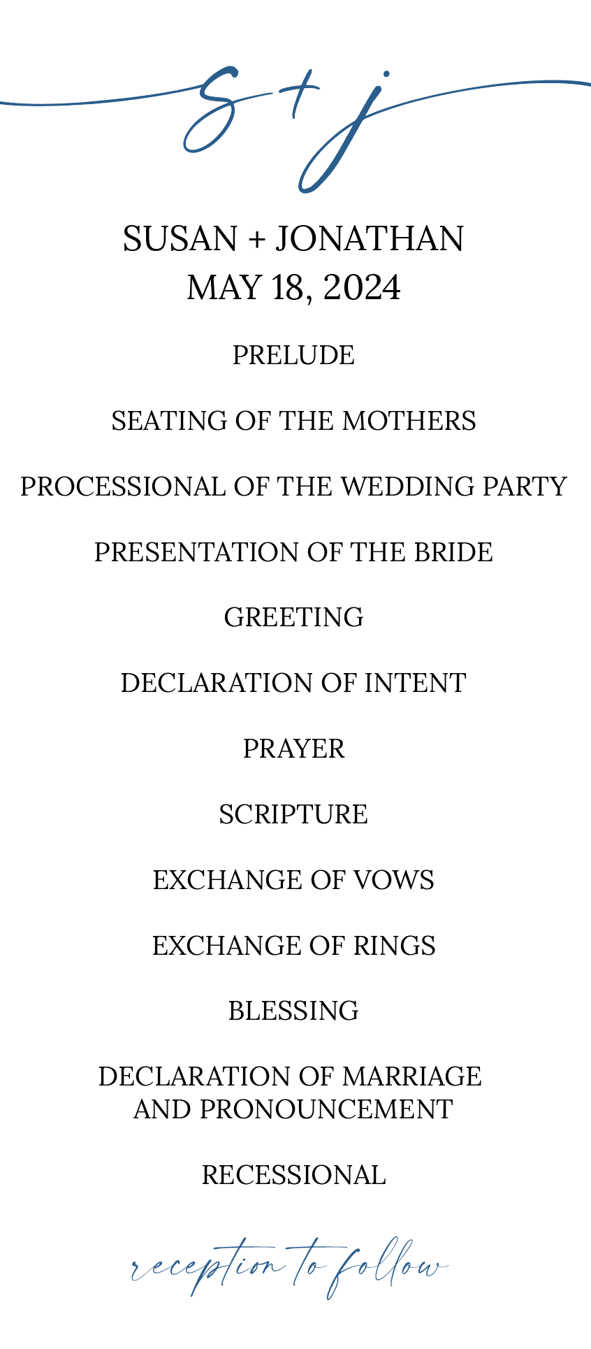 Customize for your needs, once received we will email you a form to complete for ceremony information and order along with wedding party details.