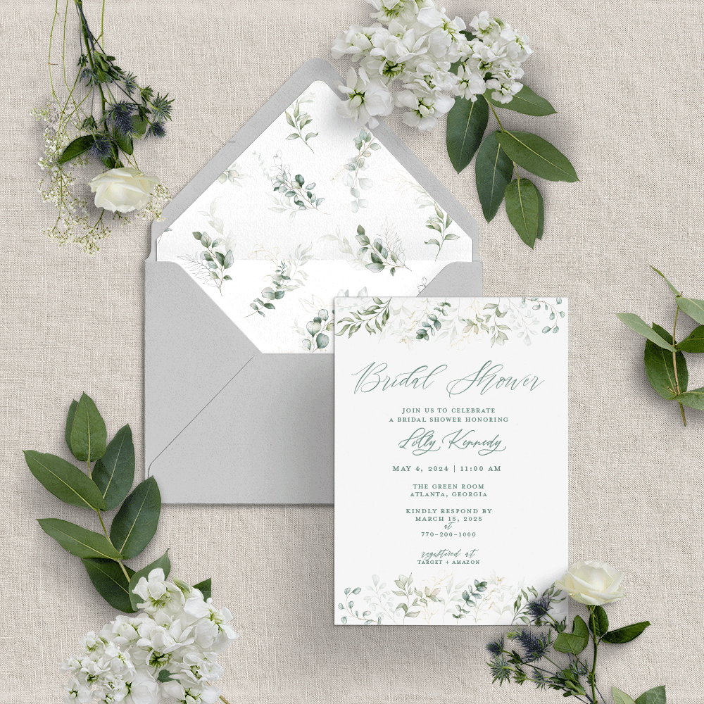 Greenery again for the win! Wedding showers, birthdays, garden parties and more would pair perfectly with these invitations. We love this with a grey or green envelope!
