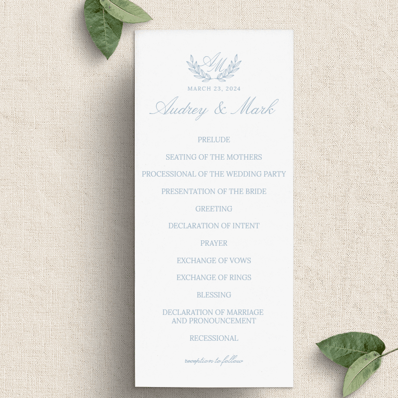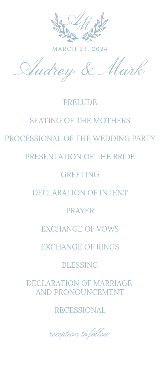 Front side has the ceremony agenda and the back includes wedding party information and a small thank you if desired.